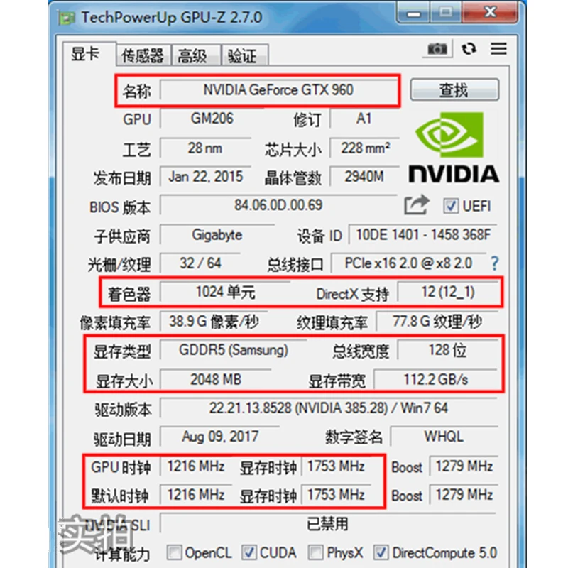 Best Price Comparison With GIGABYTE Original Geforce GTX 960 2GB Graphics Cards 128Bit GDDR5 Video Card for nVIDIA Map GTX960 GM206 GV-N960OC-2GD Hdmi Used